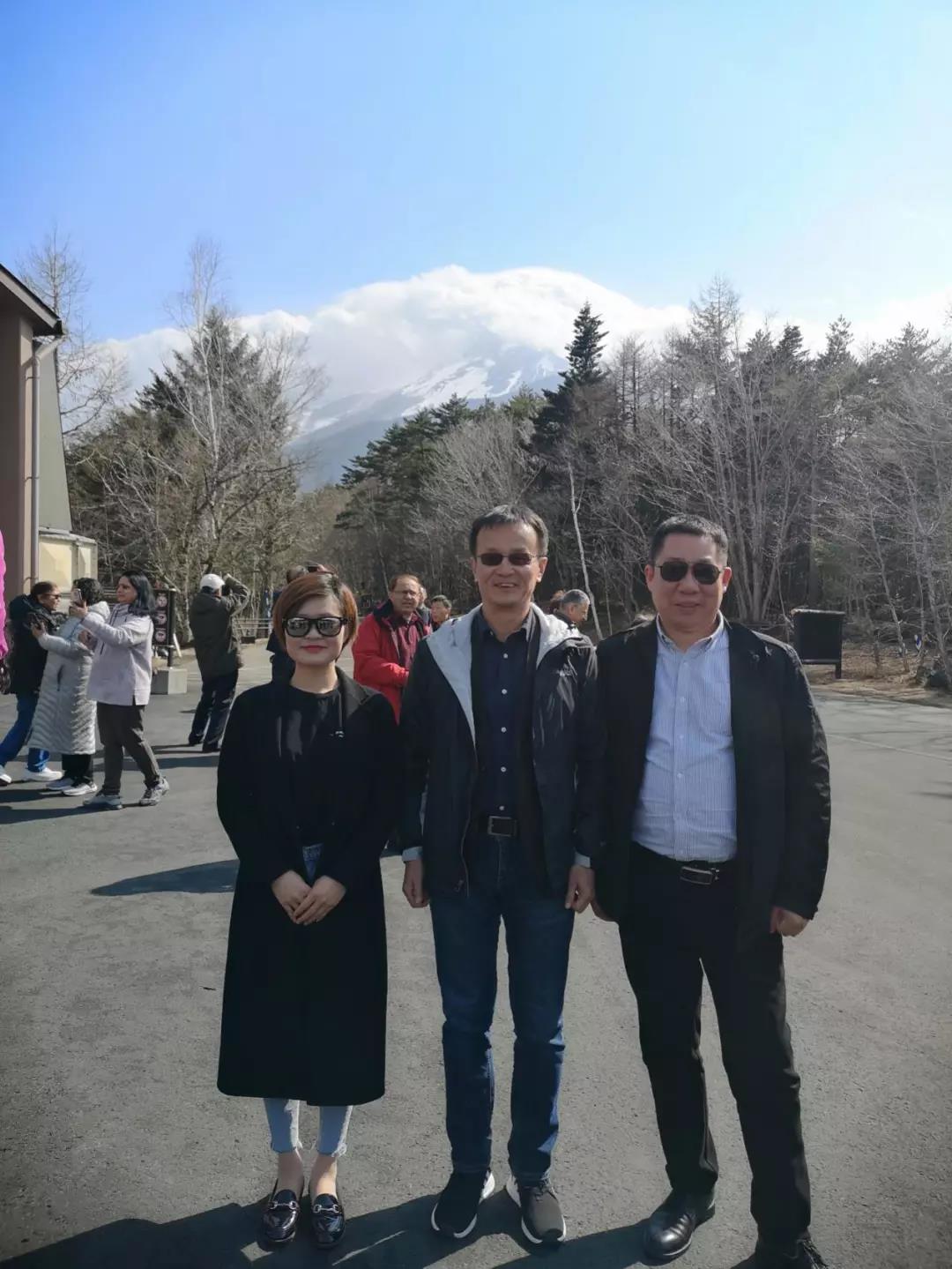 左起:荃芬郑州服务商陈淼、荃芬杜炜东、荃芬无锡服务商赵宏在富士山下